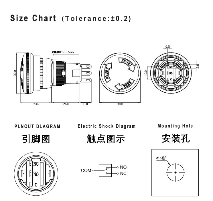 Technische parameters van CE-gecertificeerde knopschakelaar